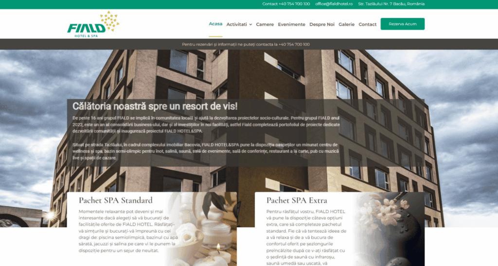 Suntem încântați să fim partenerii proiectului complex Fiald Hotel, contribuind atât la dezvoltarea și mentenanța website-ului oficial https://fialdhotel.ro/, cât și