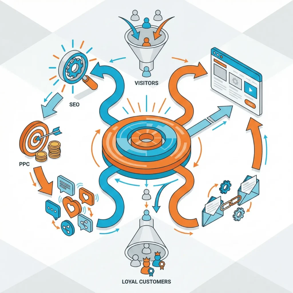 Nu vindem servicii izolate. Construim sisteme de marketing care atrag, convertesc și rețin clienți – măsurabil, predictibil și scalabil.